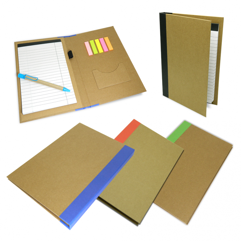 Libreta Ecológica Libreta de apuntes, bolsillo interior, notas adhesivas tipo post-it, incluye esfero ecológico. vienen en diferentes colores.